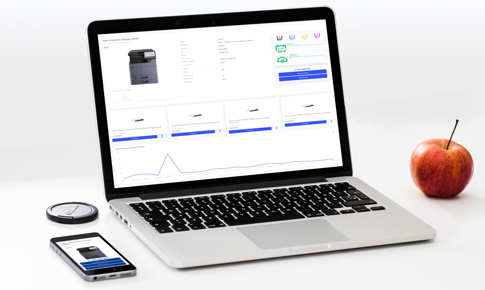 Легко узнать всю необходимую информацию, вызвать инженера или заказать расходные материалы.